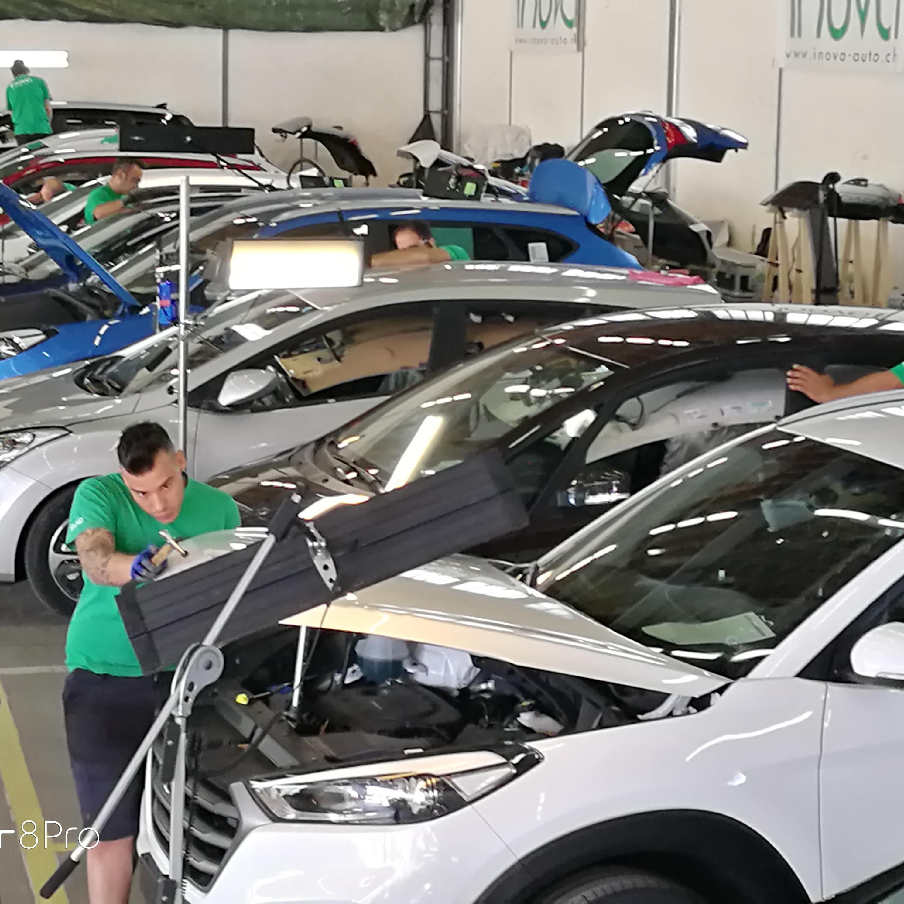 El servicio dedicado a la reparación de daños por granizo con la técnica PDR de reparación de abolladuras sin pintura está destinado a fabricantes de automóviles para proyectos a gran escala en todo el mundo, pero también a concesionarios y talleres mecánicos para proyectos minoristas.
